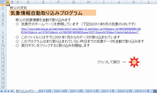 ・ 気象庁のホームページのデータがエクセルシートに書き出されます