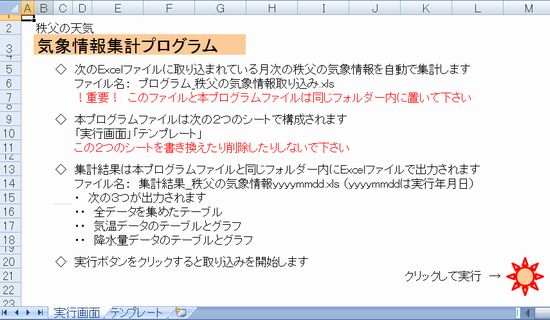 ◇ Excelファイルに取り込まれている月次の秩父の気象情報を自動で集計します
