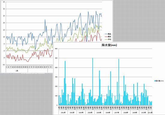 ・ 気温および降水量のデータテーブルとグラフも出力します